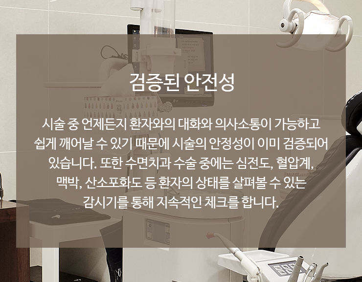 의식 진정요법으로 미국과 일본, 유럽 등 치과선진국에서 각광받는 고급치료로 불안과 통증이 감소되는 안전한 치료법입니다.