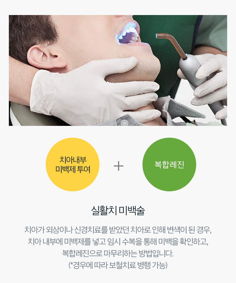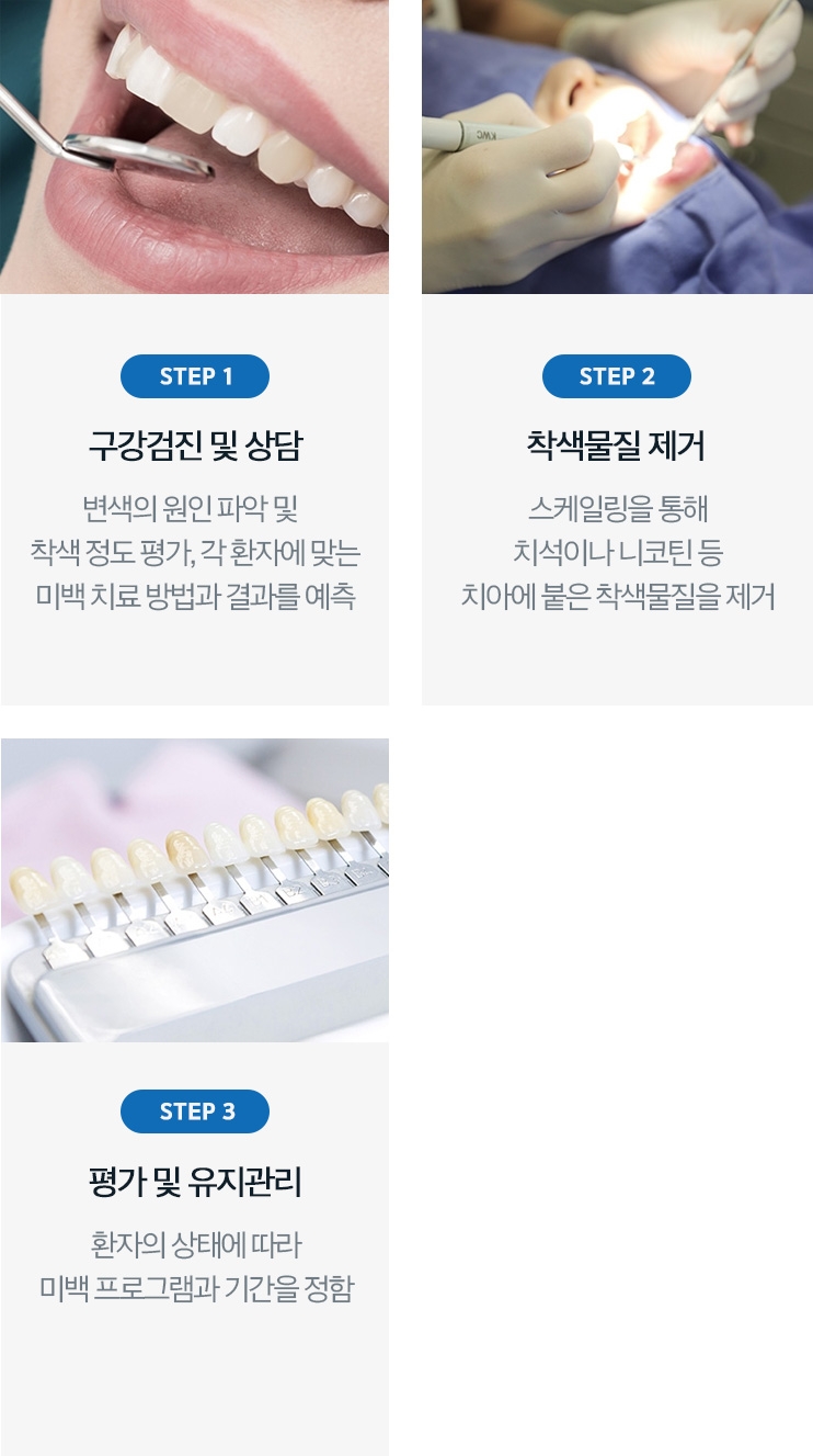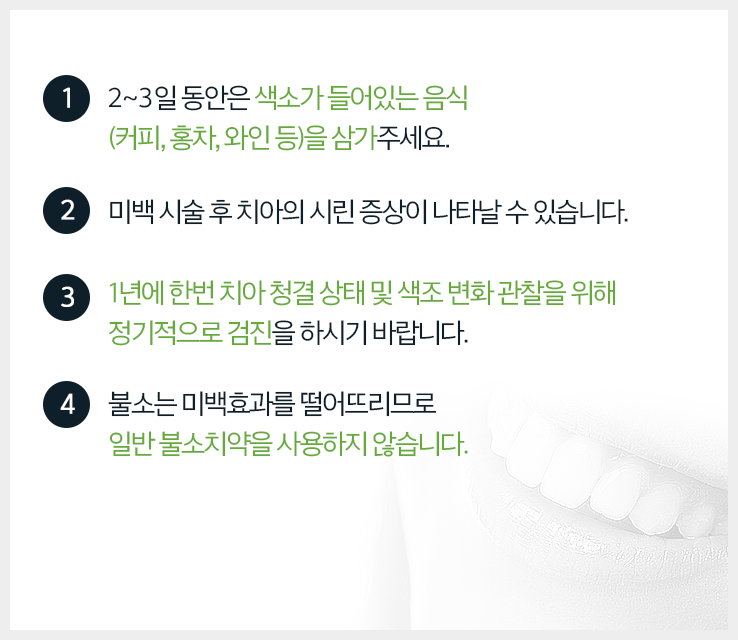 치아의 원래 색으로 회복시키거나 더 밝게 해주는 시술입니다.