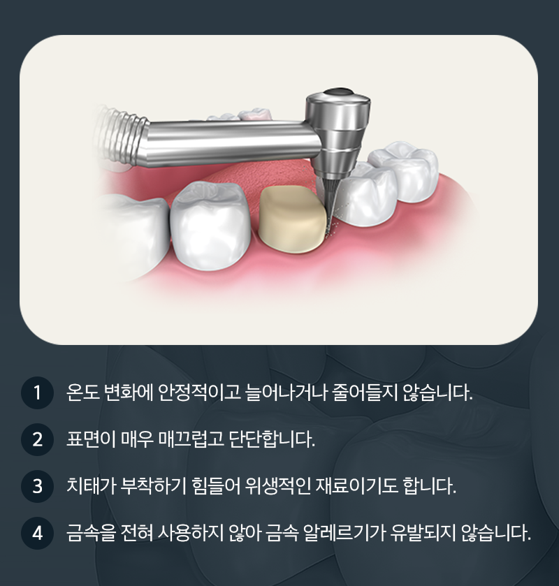 치아 색조를 가진 도자기(세라믹)을 사용하여치아 전체를 감싸주는 방법으로