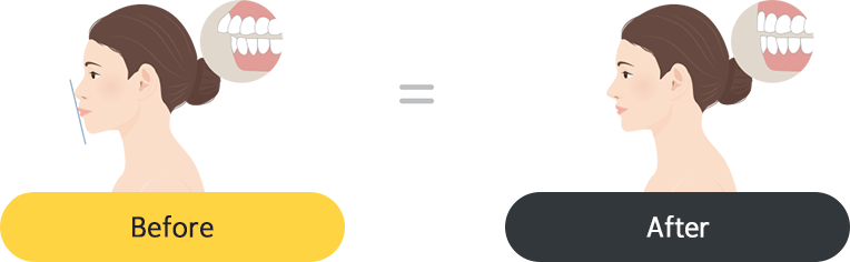 치아교정을 통해 뻗어 나온 앞니를 뒤로 당겨 넣는 치료입니다. 나온 입을 넣기 위해서는, 송곳니 뒤쪽에 있는 작은 어금니를 발치하고 그 자리를 이용해 앞니를 당기게 됩니다.